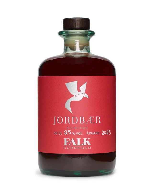 Jordbærlikøren har sin smag fra forskellige sorter solmodne jordbær, plukket i ’22 og frem hos familien Vesteragers jordbærplantage ved bygrænsen til Tejn.