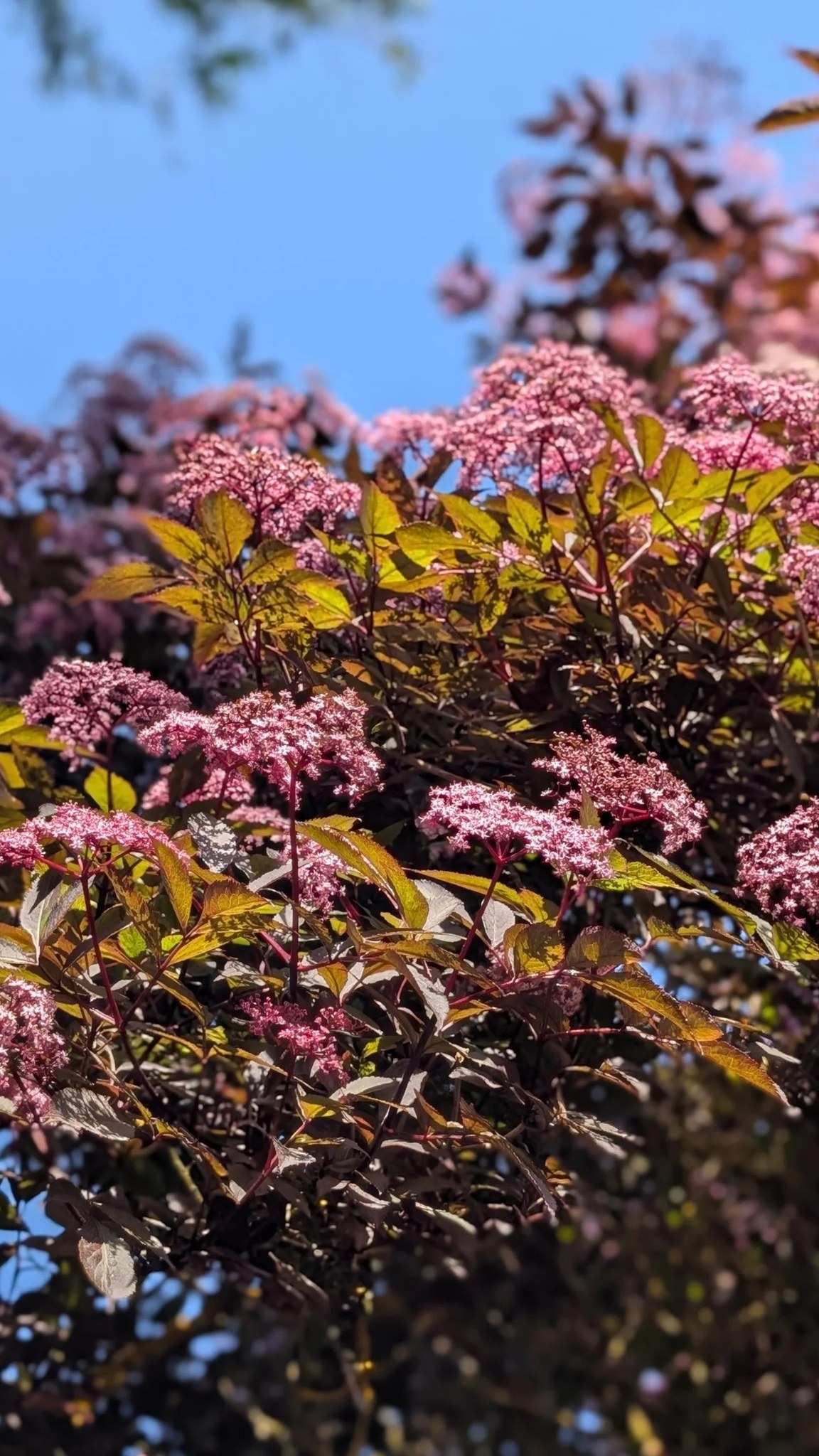 I Heidi og Carstens have på sydøst Bornholm vokser der en kæmpe stor, gammel hyld af sorten 'black beauty'. Blomsterne fra hyldesorten sambucus nigra black beauty har dyberøde blomster og mørkegrønne, nærmest sorte blade.