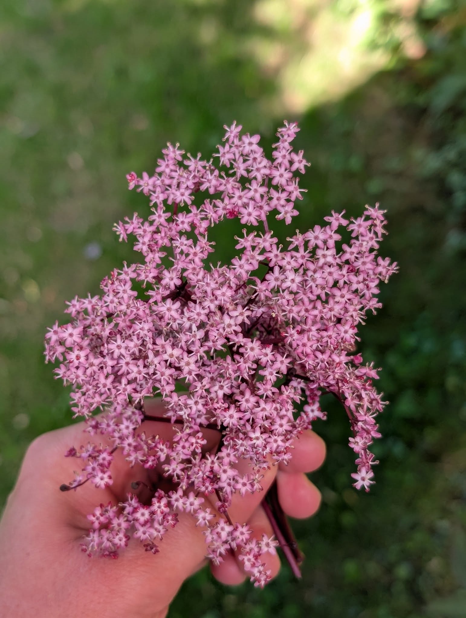 Røde hyldeblomster har en mere bær- og frugtagtig smag end de klassiske hvide hyldeblomster med tydelige noter af modne bær, som kan minde om solbær.