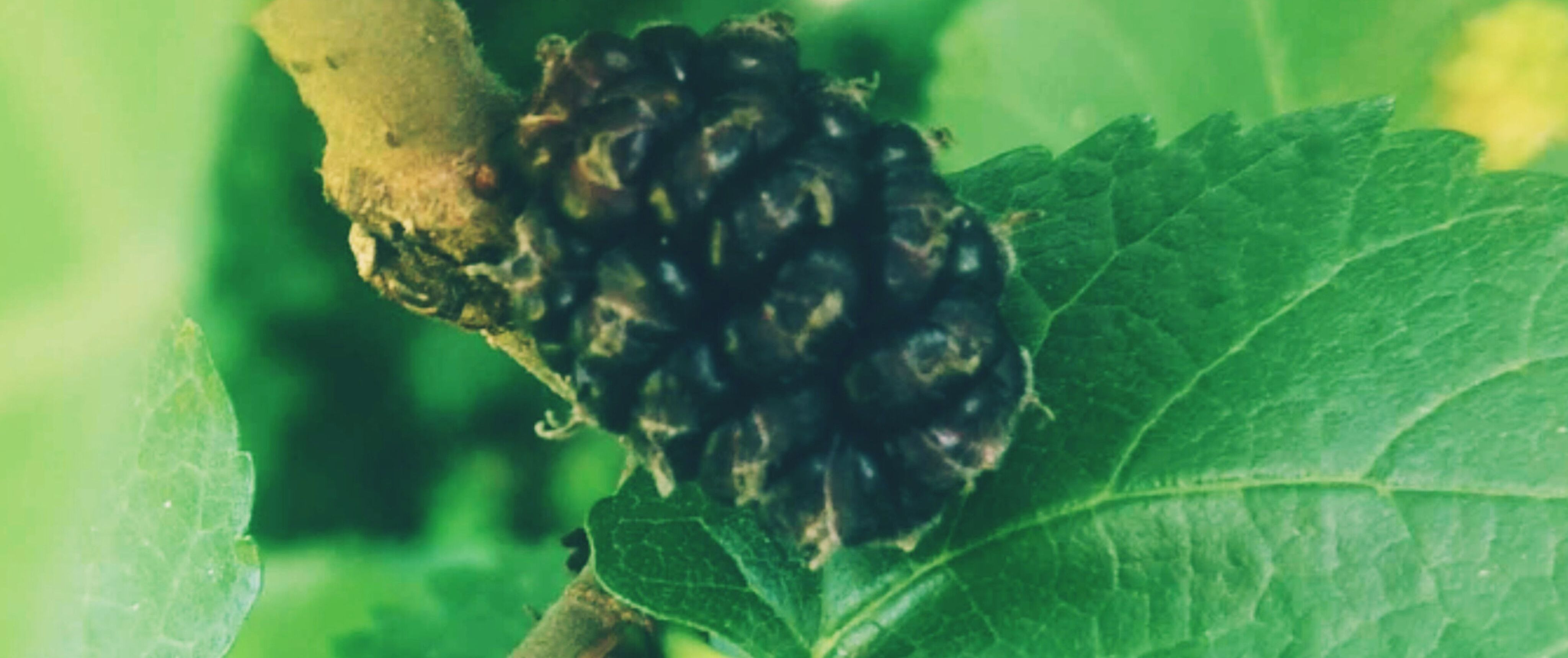 Morbærene er helt særlige. De er fulde af en tyk saft, og morbærrene har en kraftig, parfumeret, utroligt sød og utroligt syrlig smag. Der findes sjældent morbærtræer andre steder i Danmark end her på Bornholm. Det siges, her gror så mange morbærtræer, fordi man engang forsøgte at dyrke silke.
